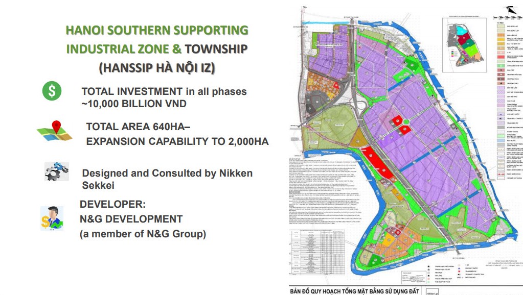 Total site is 640 Ha in Southern district Phu Xuyen, one of 5 satelite cities of Hanoi. License include the development industrial park and living township development ,awarding the favorable tax holidadays in BIT and import duty as High tec industrial park enjoys. Sein consults and calls for global investors to enter into joint ventures, arranging loansor capital investment to build green and clean industrial parks in Hanoi. All previous business license and land use permit are on hand and can start to sell 35 Ha at first stage ,planning to develop phase by phase until copmpletion
