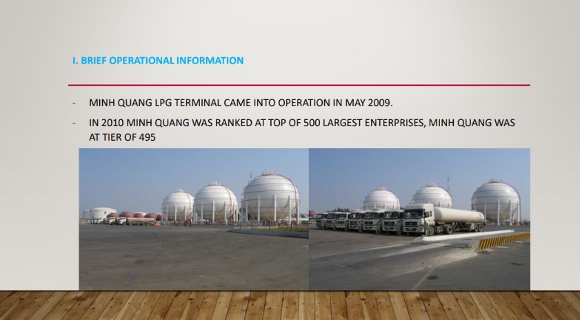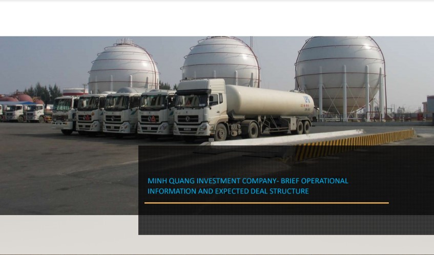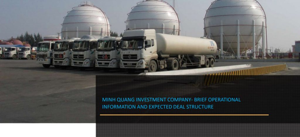 Sein Arranged the capital investment M&A for LPG import.operation and distribution entity ,Minh Quang .Tanks capacity is 4,500ton(1,500ton*3) and had a business records of whole sales for recent years. As a domestic connsumption increase by 15% a year MQ is seeking for the expansion of capacity by two fold(plus 3 tanks) by vertue of M&A.